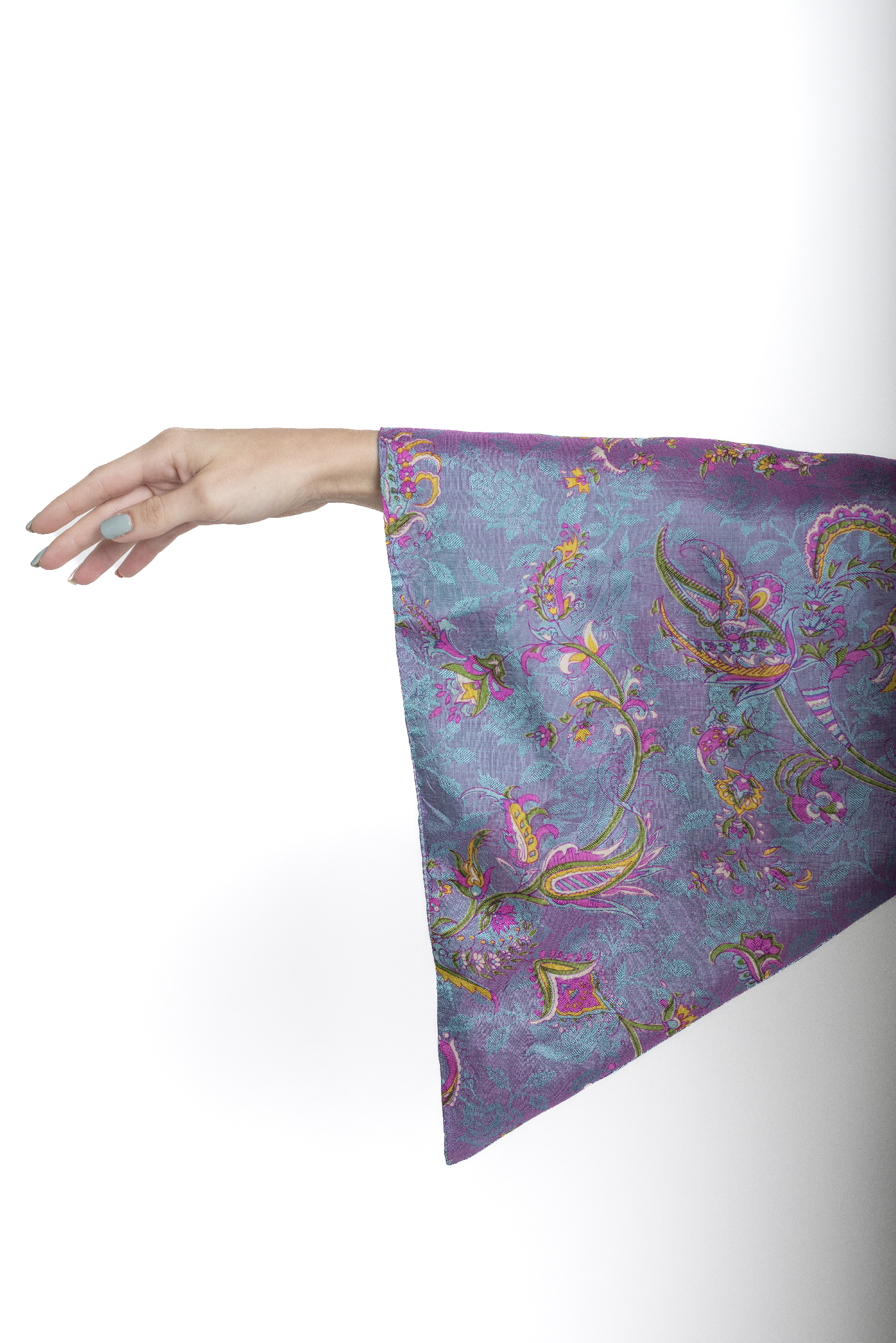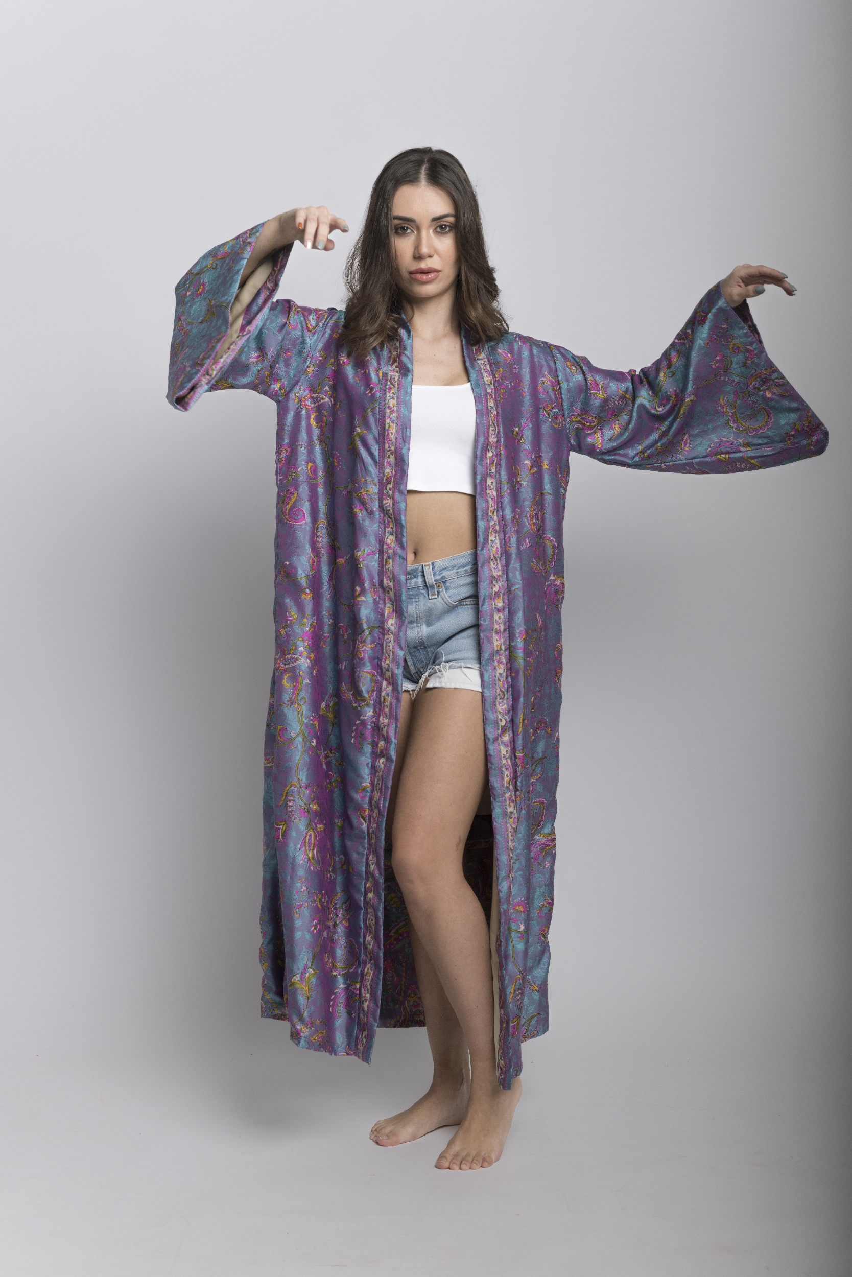 Discover the unparalleled elegance of the Reversible Kimono Blossom Flower , a true one-of-a-kind masterpiece. Crafted from 100% pure silk, carefully sourced from antique sarees, this kimono is a luxury statement piece that embodies craftsmanship, sustainability, and timeless beauty. Every stitch is meticulously hand-sewn by skilled Italian artisans, ensuring exceptional attention to detail—even the thread used is pure silk.Designed to be fully reversible, this kimono offers two unique aesthetics in one, each side featuring a different, stunning pattern. Made from noble natural fibers, its silk fabric is breathable and thermoregulating, adapting to any season while providing unmatched comfort.