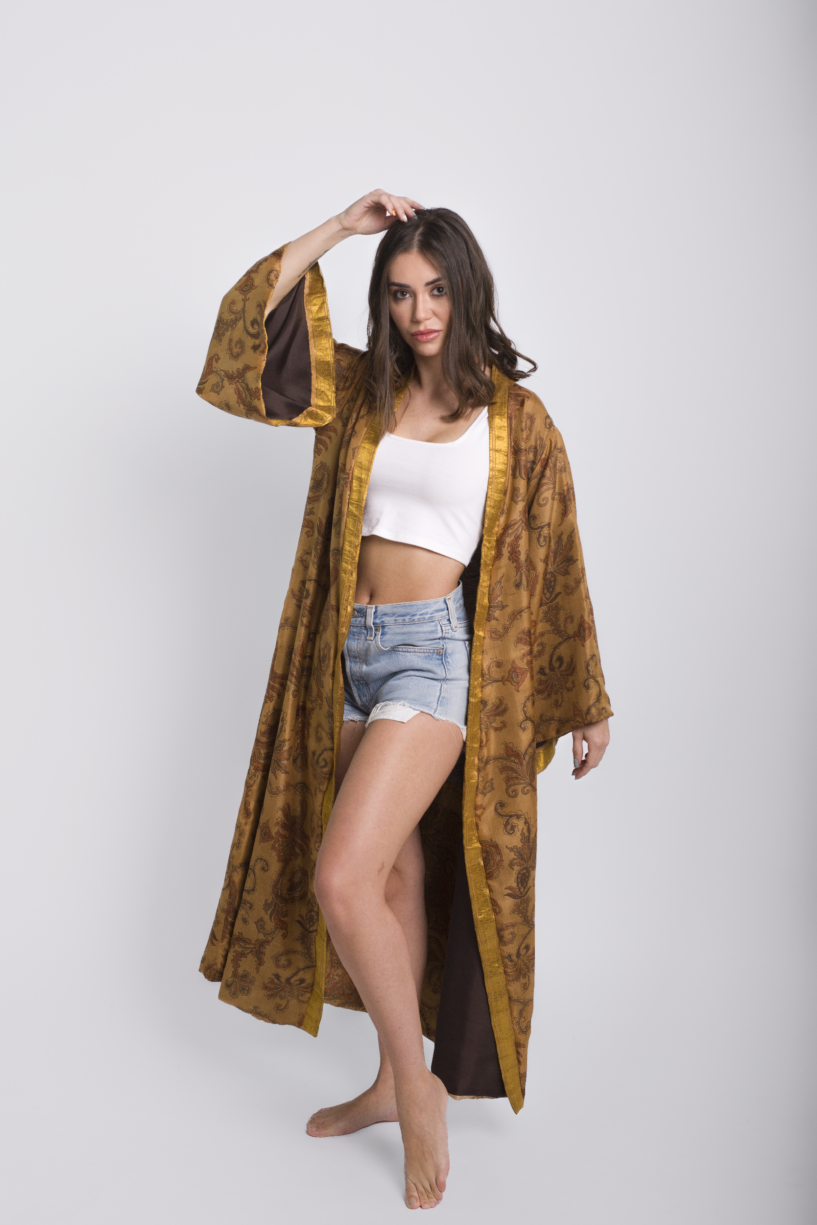 Coffee – Inspired by the rich hues and deep aroma of freshly roasted coffee, this kimono exudes warmth and sophistication.