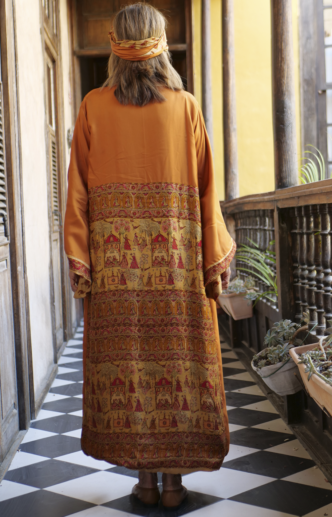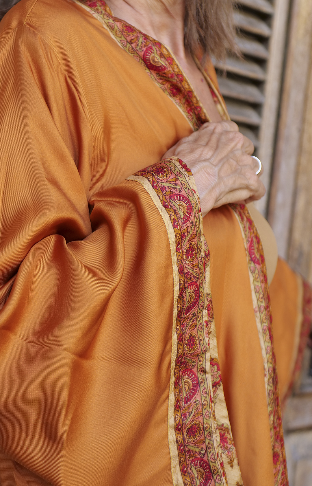 Discover the unparalleled elegance of the Reversible Kimono AGADIR, a true one-of-a-kind masterpiece. Crafted from 100% pure silk, carefully sourced from antique sarees, this kimono is a luxury statement piece that embodies craftsmanship, sustainability, and timeless beauty. Every stitch is meticulously hand-sewn by skilled Italian artisans, ensuring exceptional attention to detail—even the thread used is pure silk.