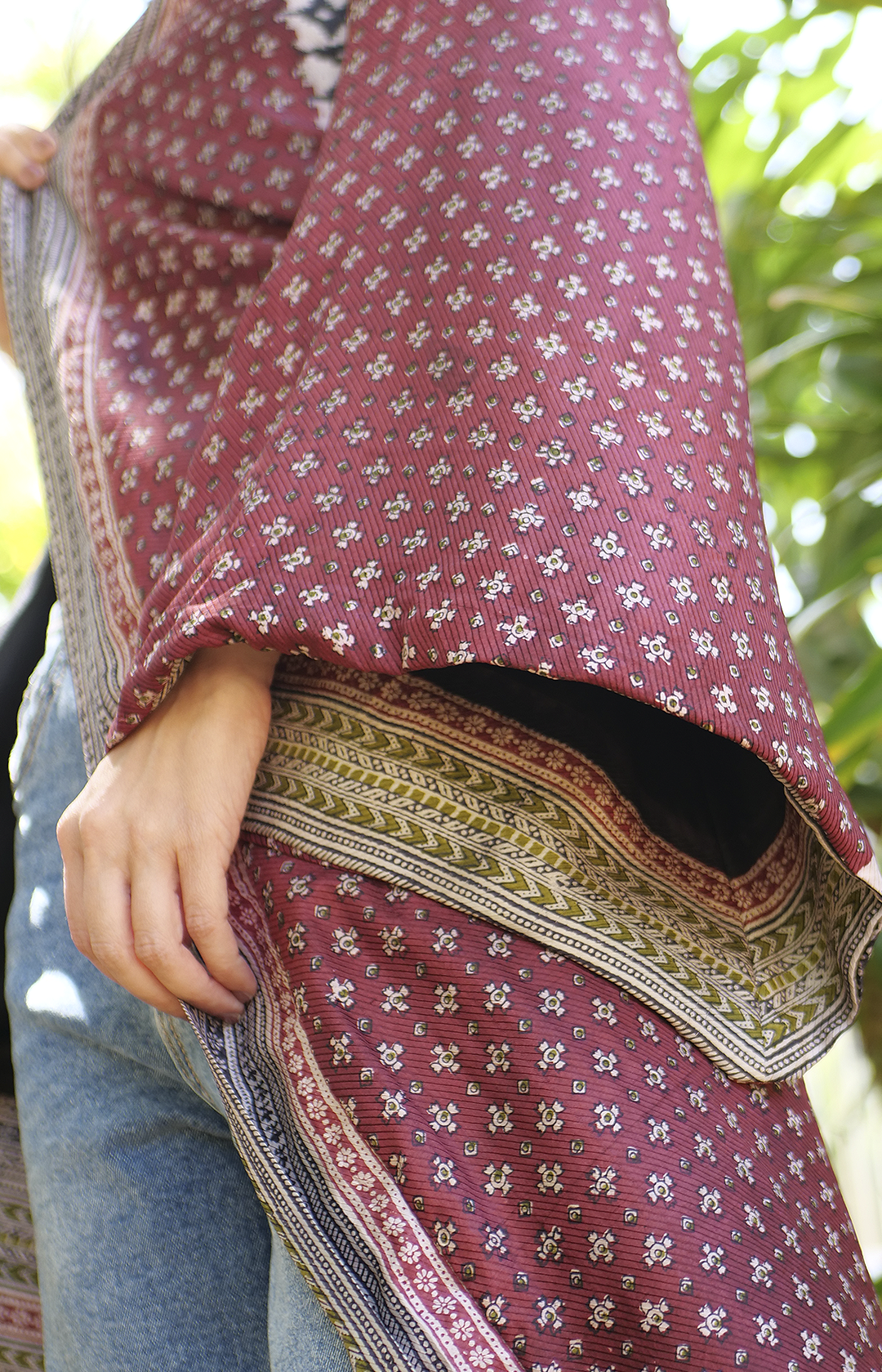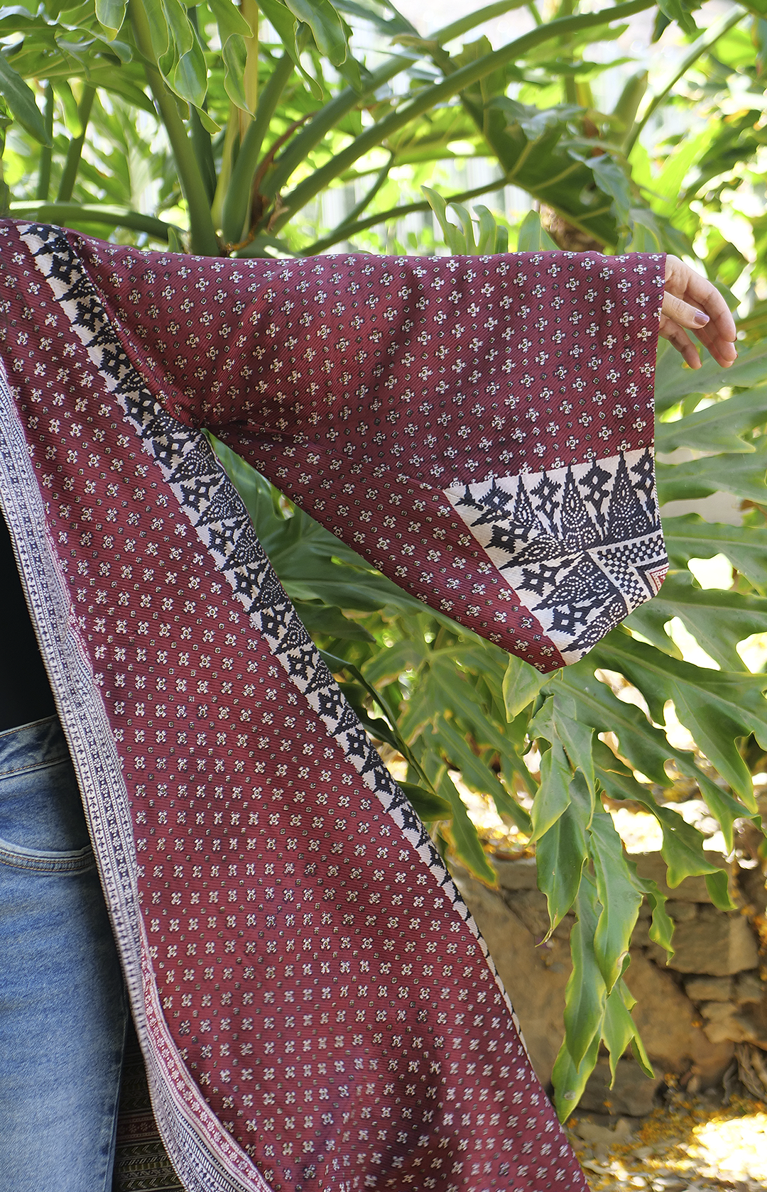 Discover the unparalleled elegance of the Reversible Kimono Beirut , a true one-of-a-kind masterpiece. Crafted from 100% pure silk, carefully sourced from antique sarees, this kimono is a luxury statement piece that embodies craftsmanship, sustainability, and timeless beauty. Every stitch is meticulously hand-sewn by skilled Italian artisans, ensuring exceptional attention to detail—even the thread used is pure silk.