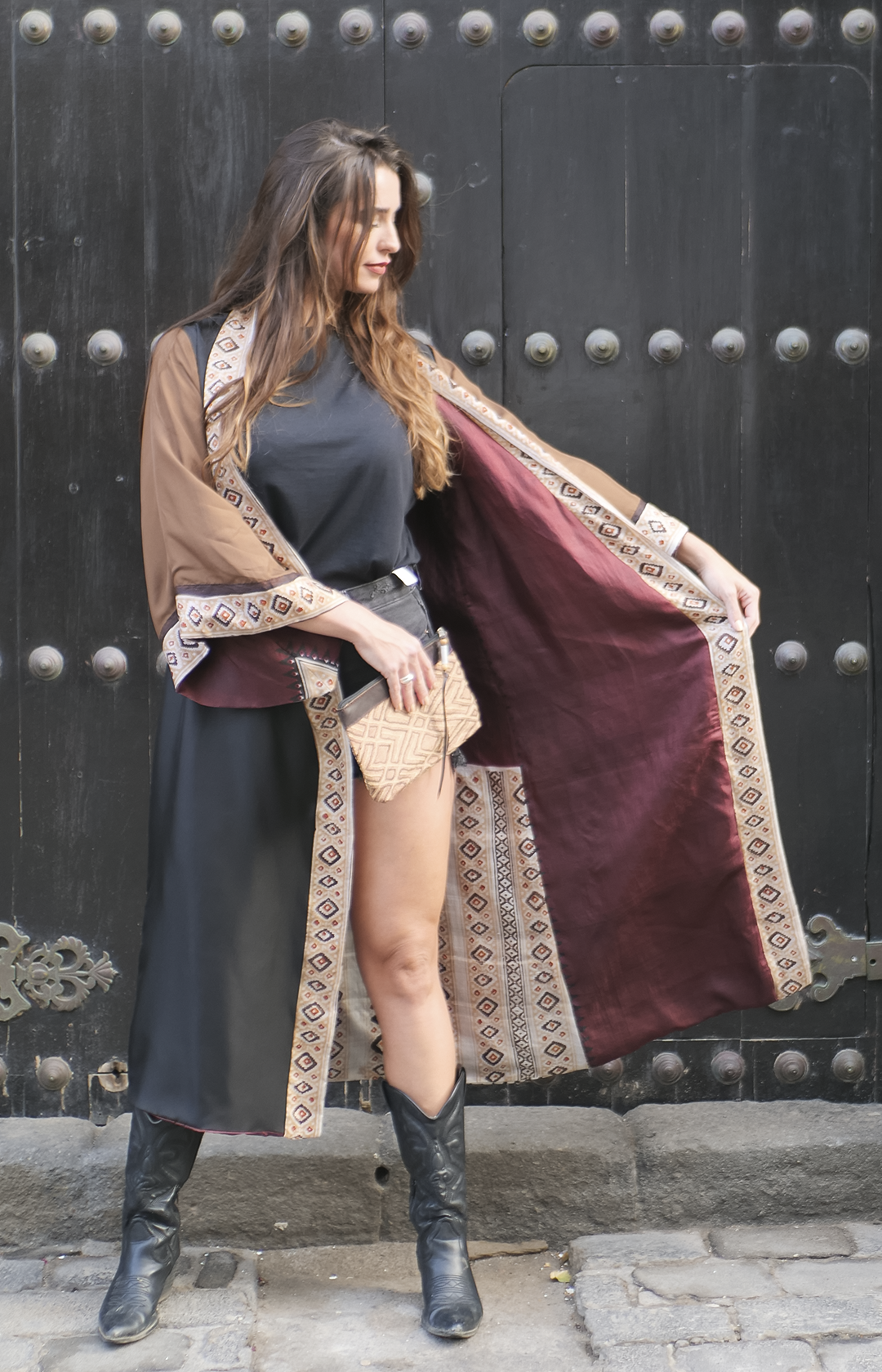 Hecho completamente a mano con seda vintage. Dado que parte de la tela es antigua, el tiempo puede haber dejado rastros que le dan un toque distintivo a cada kimono. No son defectos, sino reflejos de su rica historia y alma.