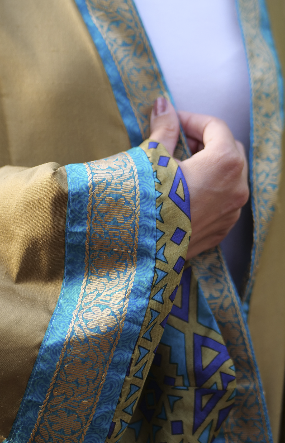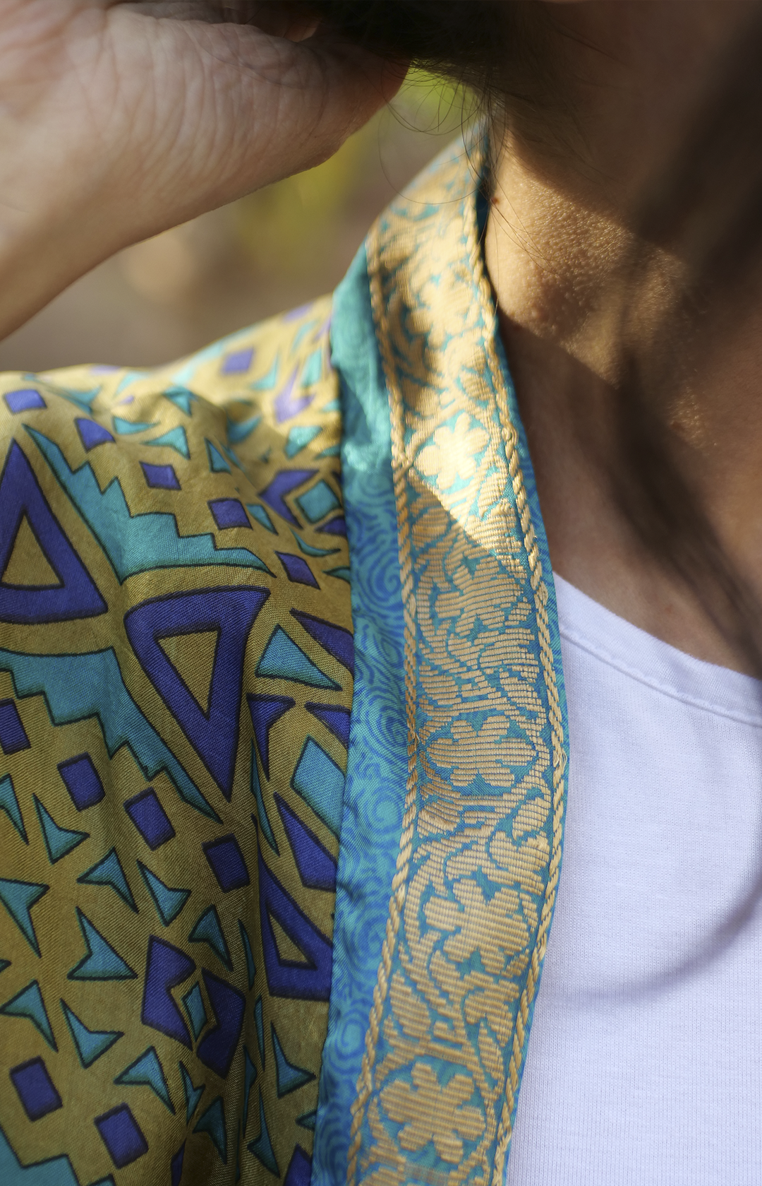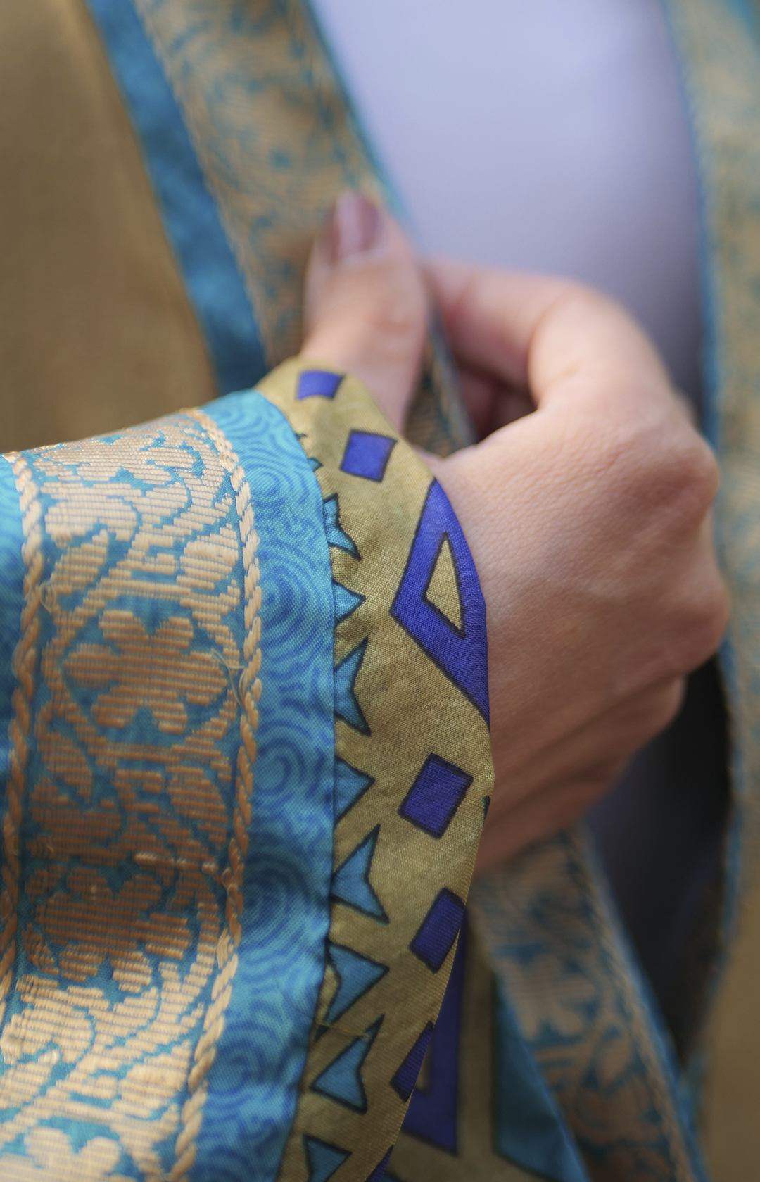 Discover the unparalleled elegance of the Reversible Kimono Malaysia, a true one-of-a-kind masterpiece. Crafted from 100% pure silk, carefully sourced from antique sarees, this kimono is a luxury statement piece that embodies craftsmanship, sustainability, and timeless beauty. Every stitch is meticulously hand-sewn by skilled Italian artisans, ensuring exceptional attention to detail—even the thread used is pure silk.