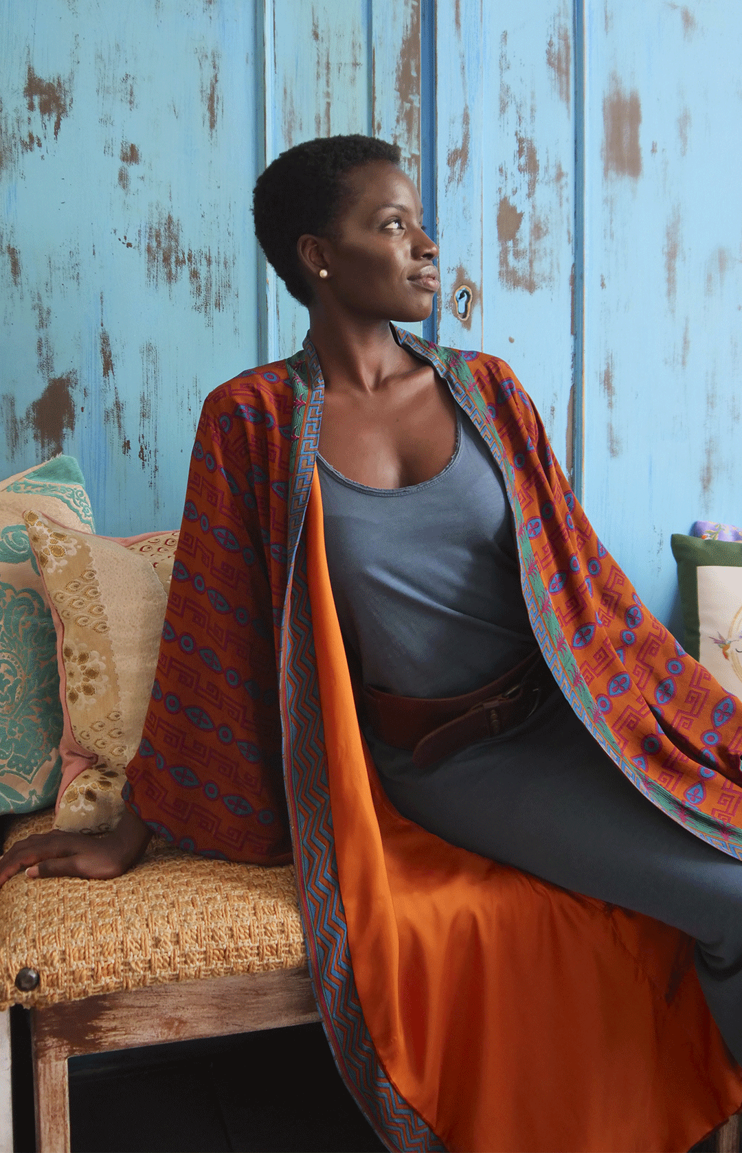 Discover the unparalleled elegance of the Reversible Kimono MONTEGO BAY, a true one-of-a-kind masterpiece. Crafted from 100% pure silk, carefully sourced from antique sarees, this kimono is a luxury statement piece that embodies craftsmanship, sustainability, and timeless beauty. Every stitch is meticulously hand-sewn by skilled Italian artisans, ensuring exceptional attention to detail—even the thread used is pure silk.