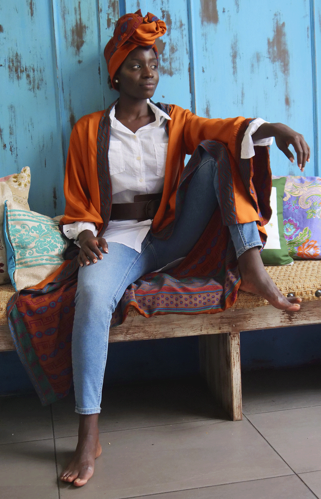 Montego Bay – Inspired by the sun-drenched shores and lively spirit of Jamaica, this kimono brings a touch of island luxury
