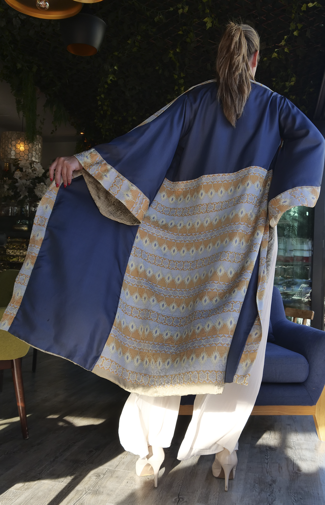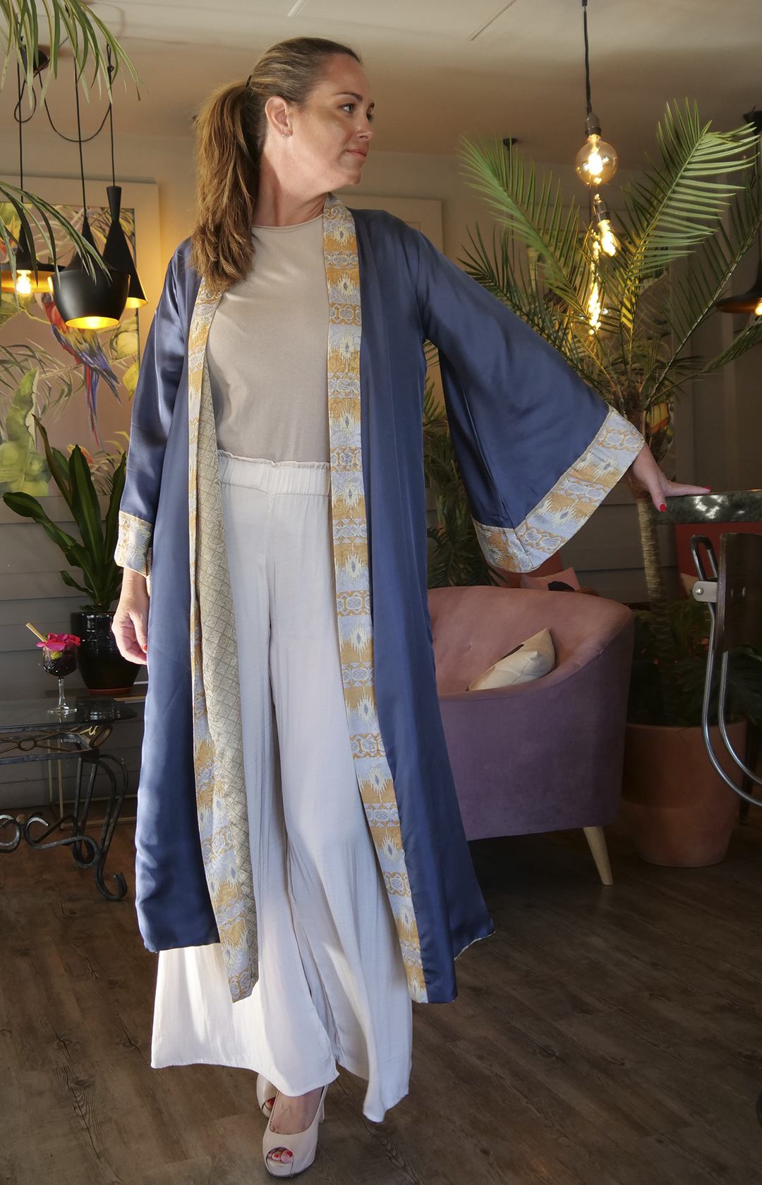 Discover the unparalleled elegance of the Reversible Kimono PARIS, a true one-of-a-kind masterpiece. Crafted from 100% pure silk, carefully sourced from antique sarees, this kimono is a luxury statement piece that embodies craftsmanship, sustainability, and timeless beauty. Every stitch is meticulously hand-sewn by skilled Italian artisans, ensuring exceptional attention to detail—even the thread used is pure silk.
