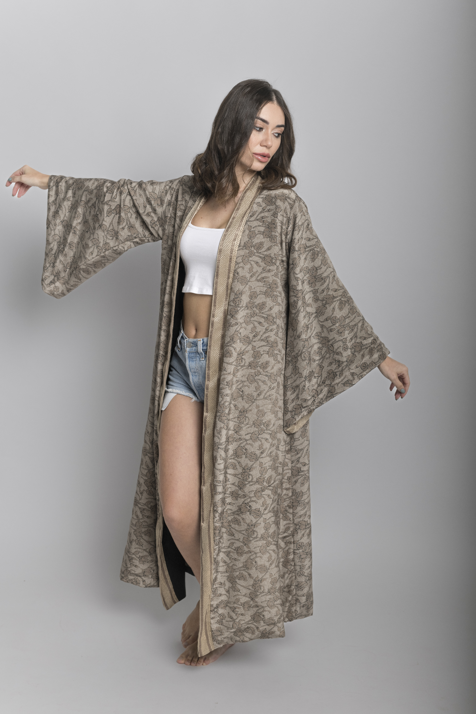 Designed to be fully reversible, this kimono offers two unique aesthetics in one, each side featuring a different, stunning pattern. Made from noble natural fibers, its silk fabric is breathable and thermoregulating, adapting to any season while providing unmatched comfort.