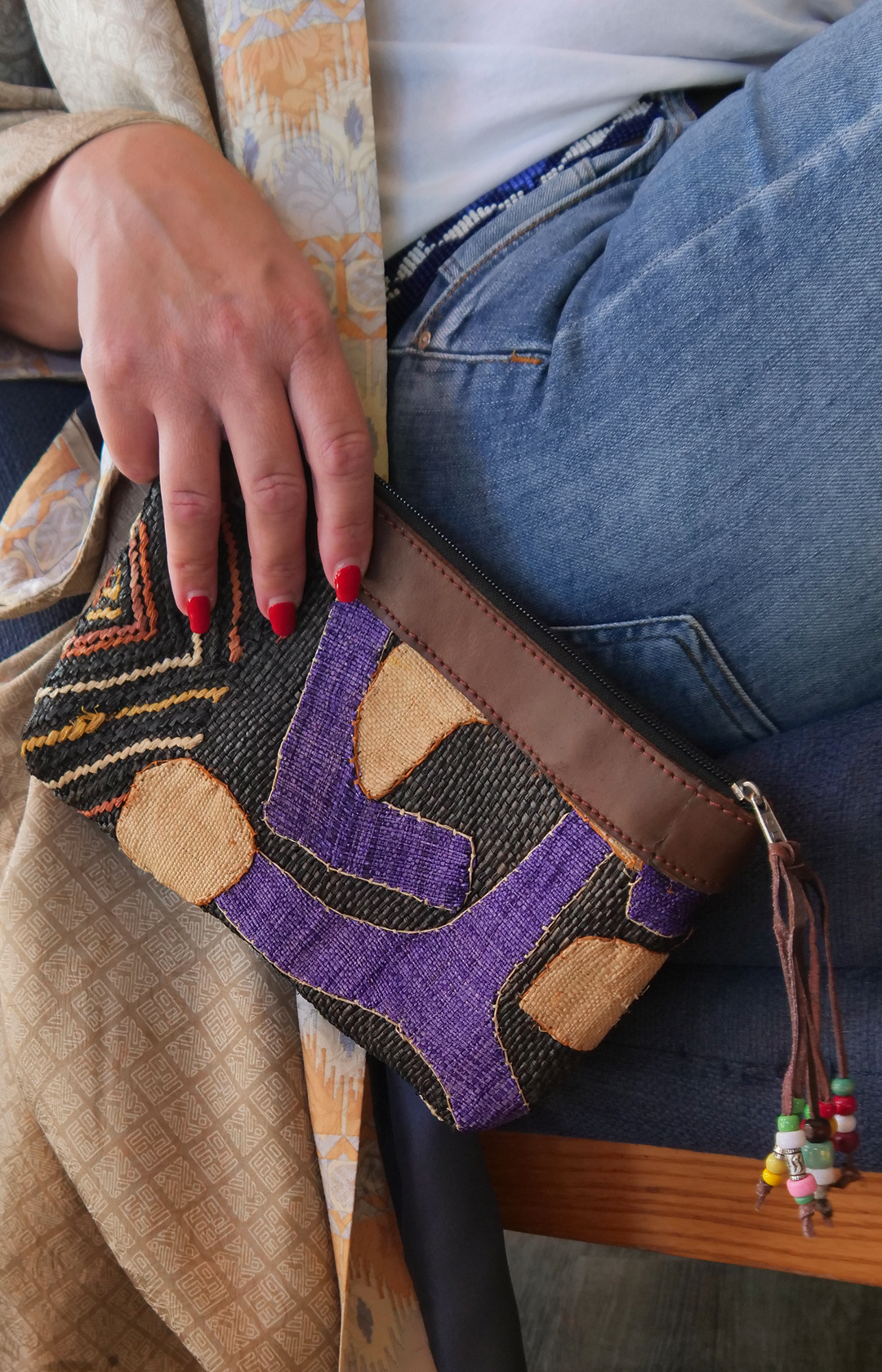 - Bag made with bakuba and leather